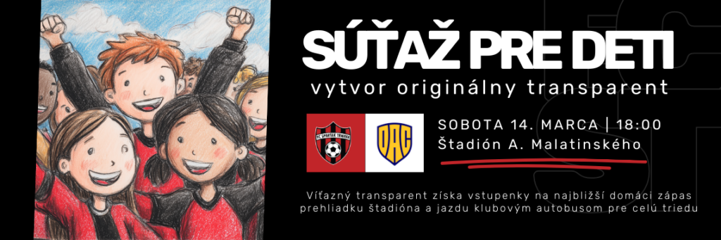 Pre materské a základné školy v Trnave sme si pripravili aj špeciálnu súťaž! Vytvorte originálny transparent, ktorý zoberiete so sebou na sobotňajší zápas a fanúšikovia rozhodnú, ktorý je ten naj!